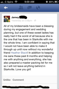 I’m getting geared up and ready for Jamey’s wedding next weekend! I’m so blessed to be a part of her special day. She actually posted this sweet message on facebook yesterday, it made me blush! 🙂
