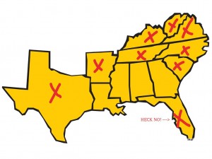 In the South… we only consider Southerners to be from the following states: Louisiana, Alabama, Mississippi, and Georgia.